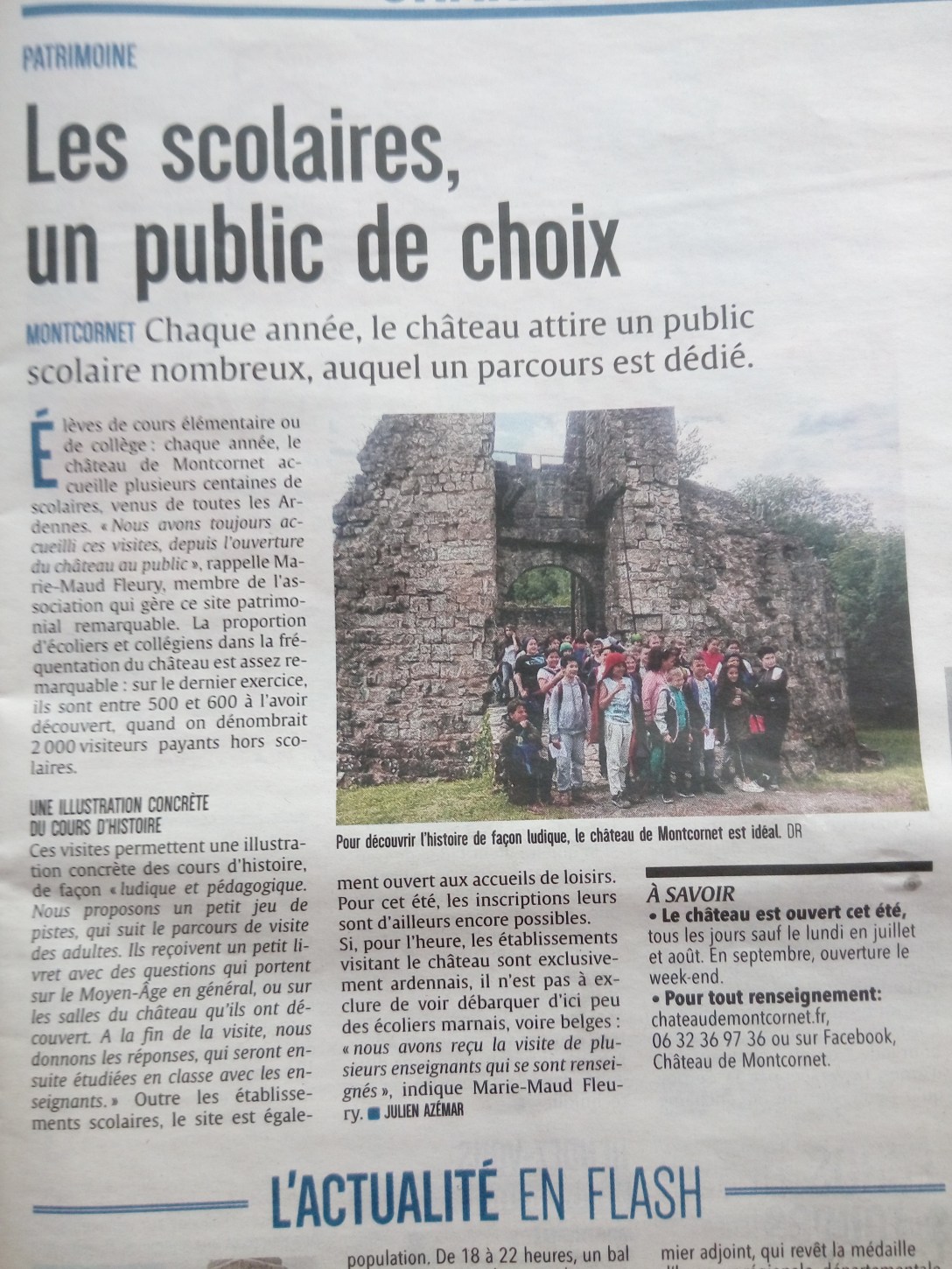 Venez avec vos élèves de la maternelle au Cm2, découvrir la vie au moyen Age au travers de la visite du magnifique château de Montcornet en Ardenne.